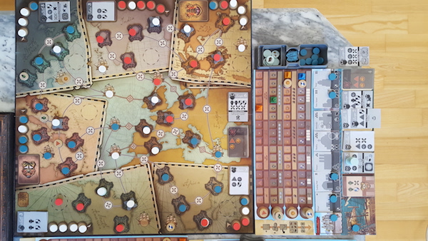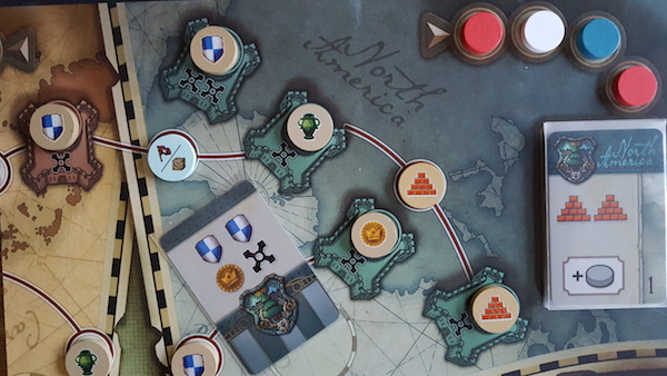 The prominence tiles remind a bit about the Exploits by providing additional options for your actions. Two examples are Naval Superiority and Military Buildup, both of which let you place population markers there and either use them in later actions on the map or leave them there to score victory points in the end.
