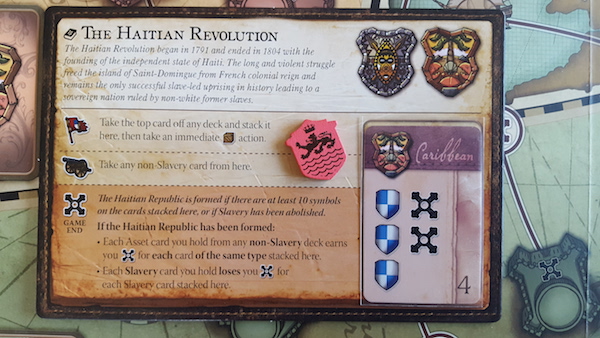 the players to intervene in the Revolution to either protect the value of their slavery cards or to