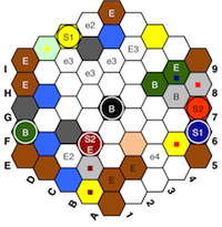 Explorer D7 Explore E3 (Lumber) B Exploit B1 Settler, Expel F2 (Wasteland), Expand D3 Village Explore H6