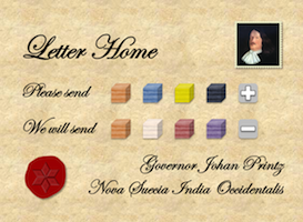 Peter Lindstrom during the last years of the colony as well as game cards depicting the historical governors.