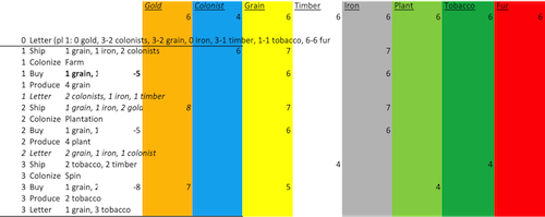 markets (different strategies have different preferences regarding the number of colonists) and the gold market