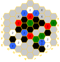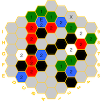 the board in the event of imbalances. The hexes have a color for the element