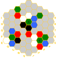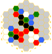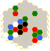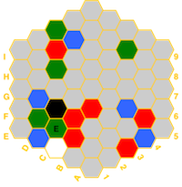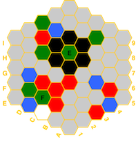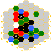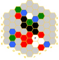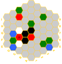 (red=fire, blue=water, white=air, green=earth, black=spirit) and if a hex has a temple,