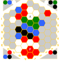 (red=fire, blue=water, white=air, green=earth, black=spirit) and if a hex has an icon,