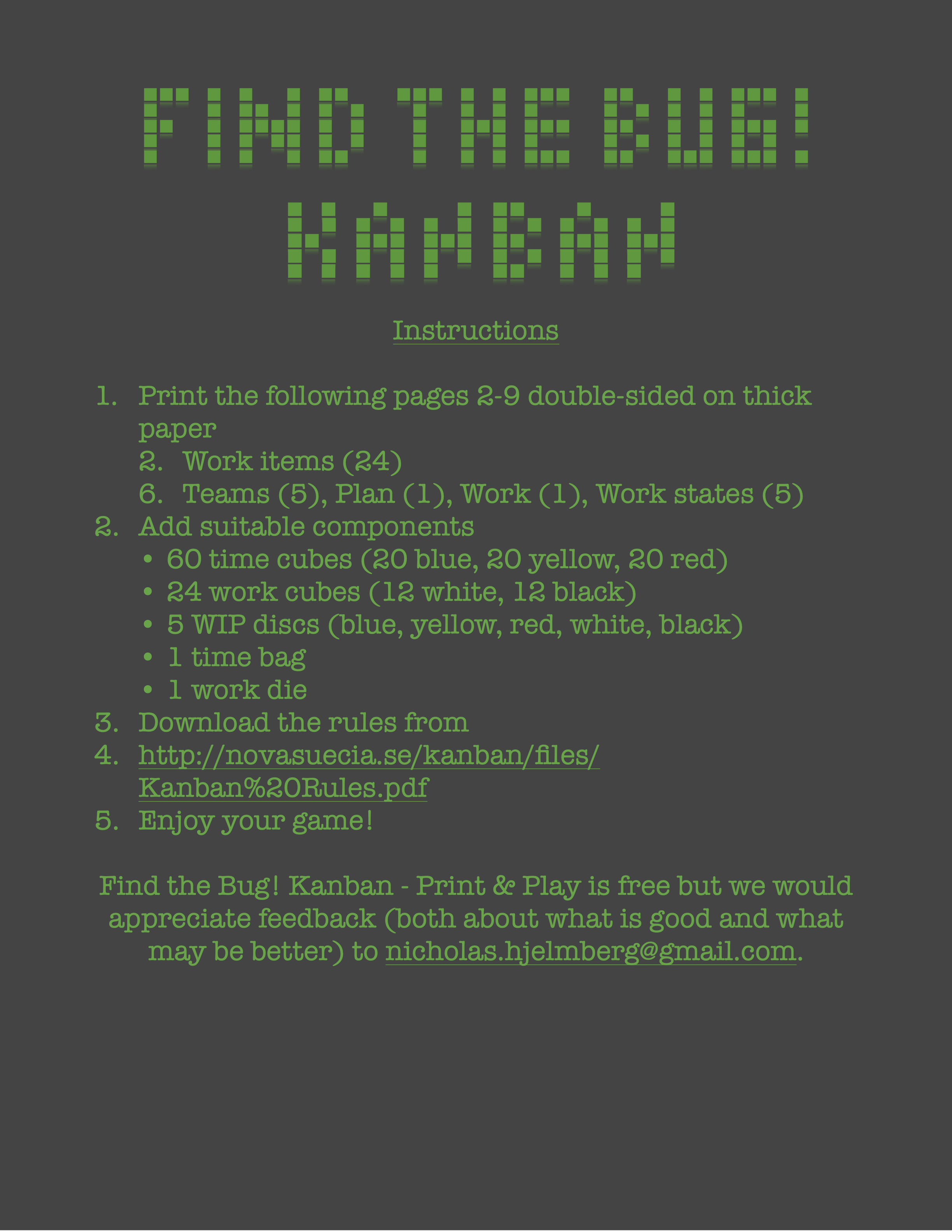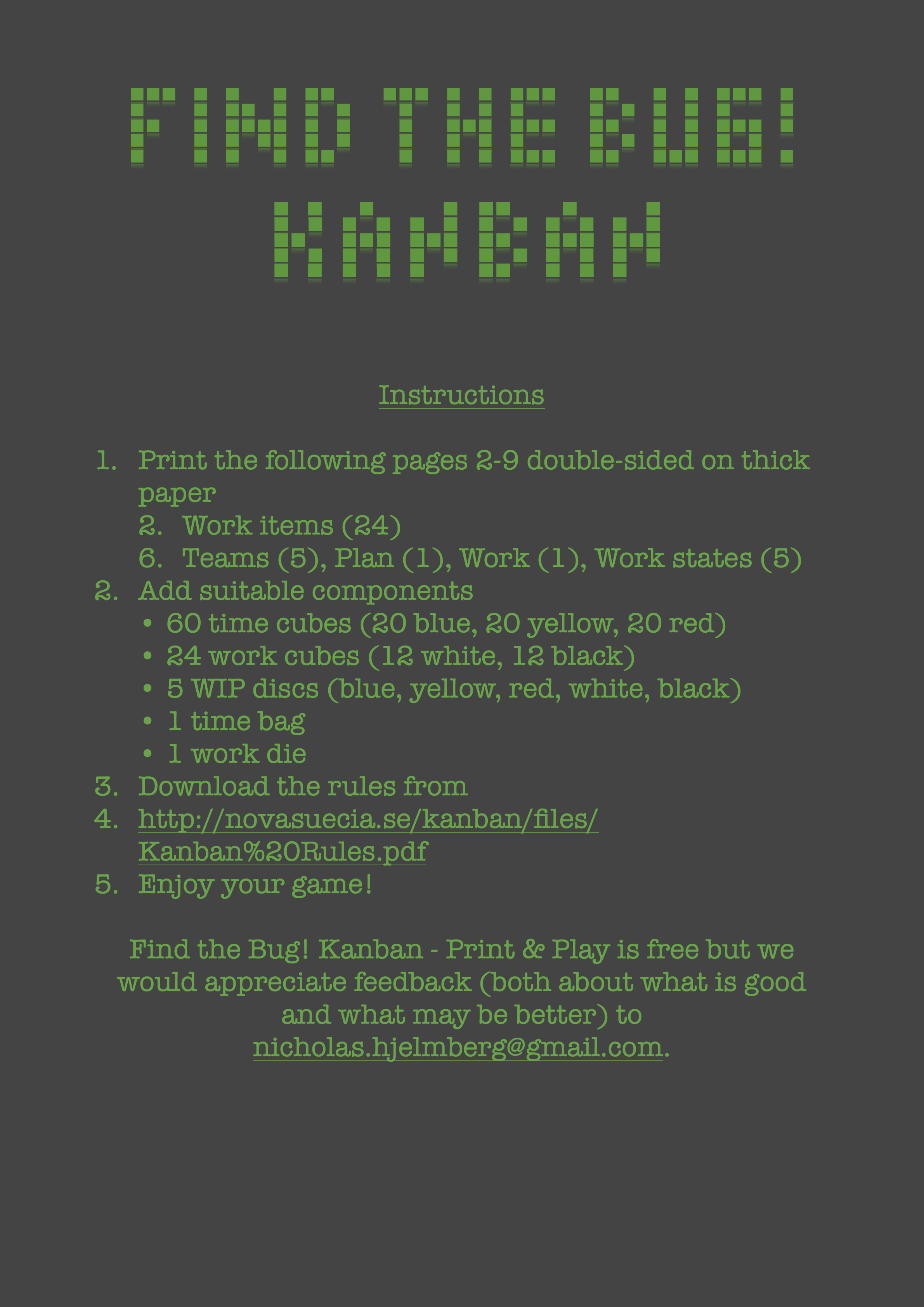fit in a small box. Find the Bug! Kanban would not only be a simple game but also a lean game!