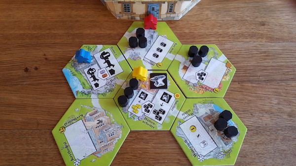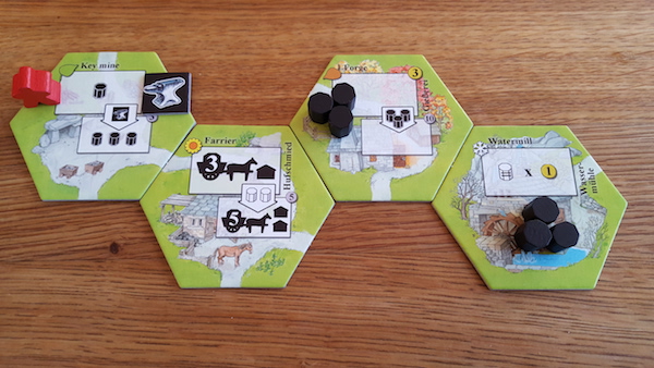 This aspect, however intriguing, can be challenging to new players, so it may be good to advise them to keep roads from resource producing tiles open. Again, your road network doesn't make or break your strategy but rather affects how well future tiles fit and hence how much you're willing to bid for them.