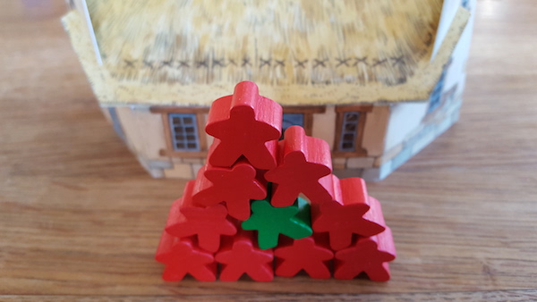 With this simple mechanic, Richard Breese has turned what could have been a multi-player solitaire, with players hoovering over their own villages, into a highly interactive game, where the players keep visiting others' villages.