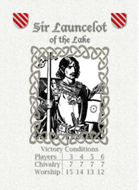 King Arthur himself was the leader of the land and the knights. He is too important to be played by a single player but by letting the player share his role, he fit in well anyway. As a just upholder of the law, it is Arthur who has the heavy responsibility (or benefit if you prefer) to choose which knights are affected by failures and disaster. A similar part is played by Merlin. His ability to see more than others is reflected by his duty to handle the otherwise secret damosels behind the chivalry cards given to the knights.