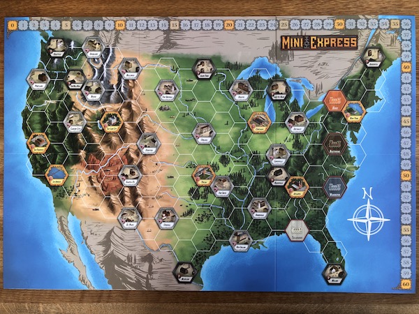 heavier 18XX games. Thus, when I learned that Mini Rails would get a spiritual successor in Mini Express my curiosity was