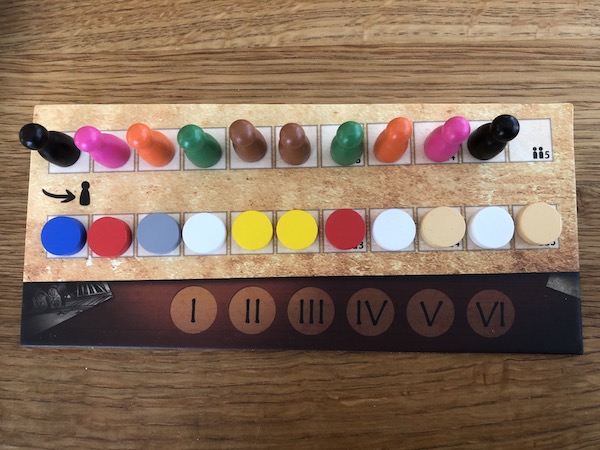 So what's more important? Getting the disc of a certain company? Going early or late in the next round? Or perhaps getting two turns in a row (by taking to adjacent discs)? Let's move on to the Action Phase to understand why color and order matter so much.