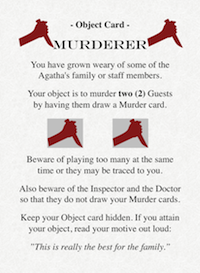 The following strategy tips may help you survive Aunt Agatha’s dinner party and win the game: