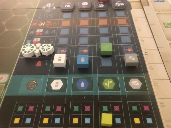 This gives On Mars a game flow where buildings are built one at the time and where the players have to have the actions and the resources at hand to take advantage of the new buildings and the increasing LSS levels.