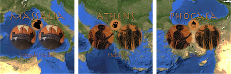 Hellas and Ionian city-states. The actions also uses geographical backgrounds (although faded out) to indicate