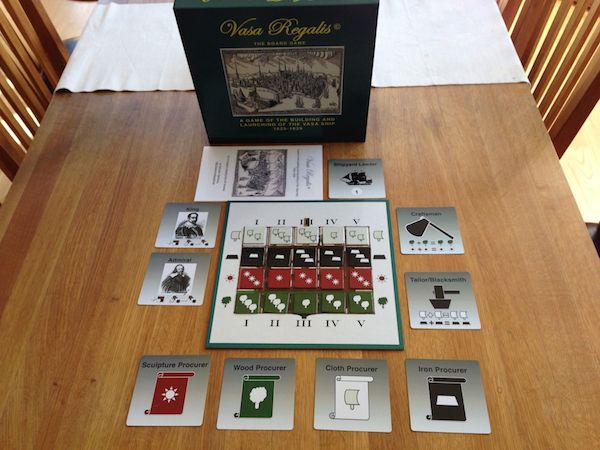 "The ambigiuous victory conditions of Vasa Regalis is what really makes the game unique and ensures that it is open until the very last game turn. A player may choose to put as much as possible on the ship, hoping that the other players will be greedy and cause it sink. Another player may choose to keep the goods for herself, hoping that the others will pay for the ship. The winning strategy will not be disclosed until the game is over and all cards turned face up."