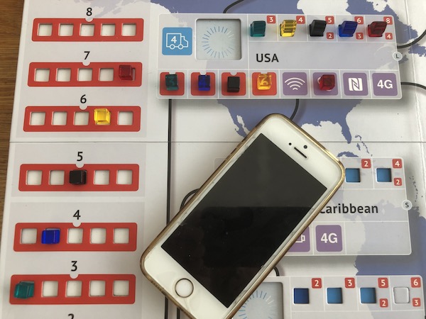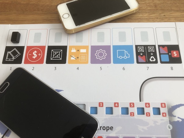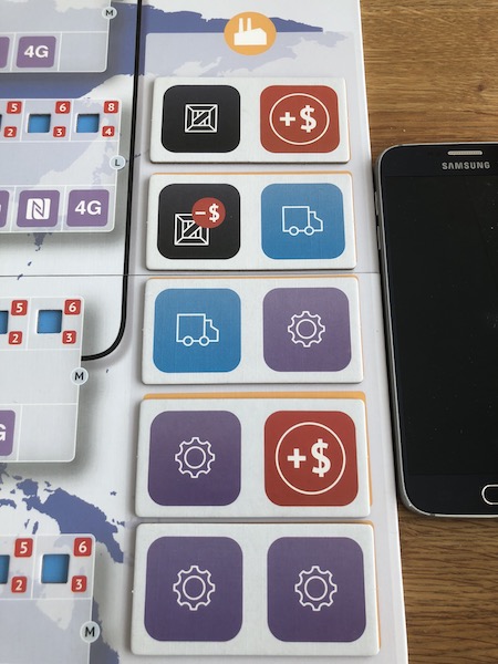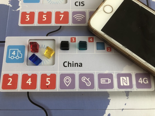 If you have more smartphones than customers, this phase has no decisions and you simply fill all the spaces you can. However, if you have less smartphones, you have to take into account which customers you can "steal" from your competitors by selling to them first (who said this is a friendly game?) and which markets you can sell the most to to get a market dominance (which will earn you victory points based on how many offices that have been placed there). The more popular a market is, the more victory points can be earned from market dominance but of course, the more fierce is the competition.