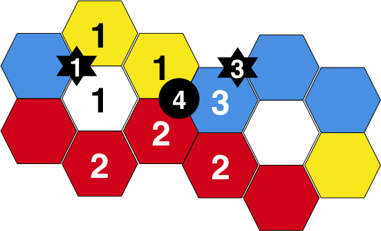 Buildings are annotated with the player number.