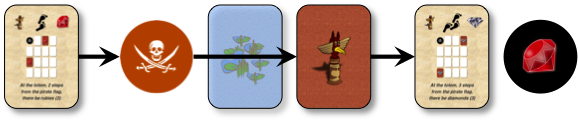 the player with the missing card to place his or her pirate flag at another space 3 cards away and, thanks to being